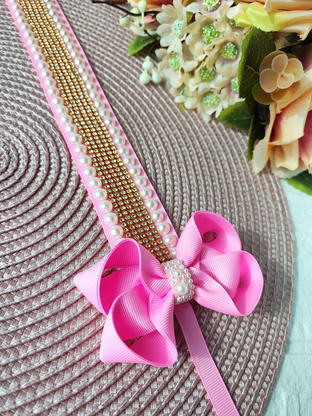 É composto por um laço medio e a fita que envolve o coque.